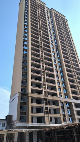1、1#樓外墻真石漆完成,內墻粉刷完成,窗框玻璃安裝完成。