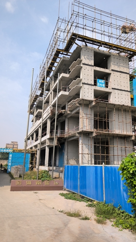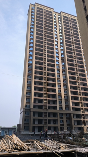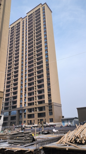 1、1#樓外墻真石漆完成,內(nèi)墻粉刷完成,窗框玻璃安裝完成。