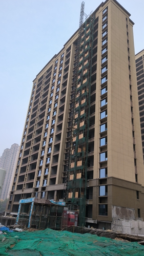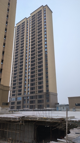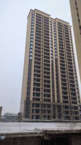 1、1#樓外墻真石漆完成,內(nèi)墻粉刷完成,窗框玻璃安裝完成。