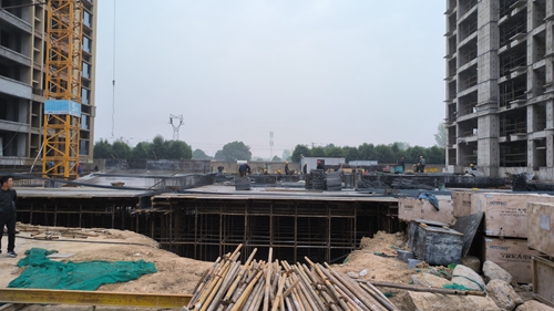 11、7#樓南側(cè)車(chē)庫(kù)梁板柱鋼筋綁扎完成50%。