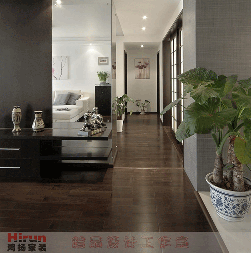 裝飾主要用材:天然鐵刀木 黑色油漆 水銀鏡 玻化磚 灰色瓷磚