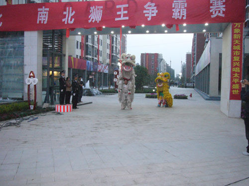 | 2007年4月27日,南北獅王爭(zhēng)霸賽,在萬象新天小區(qū)門口傾情上演。為配合一期交房和三期認(rèn)籌,營(yíng)銷部獨(dú)辟蹊徑,邀請(qǐng)中國(guó)南、北方名獅表演隊(duì)現(xiàn)場(chǎng)對(duì)決。比賽場(chǎng)面氣勢(shì)宏大,氣度非凡,幾對(duì)雄師捉對(duì)廝殺,在夜幕及燈光映照下,煞是好看。爭(zhēng)霸表演精彩紛呈,爭(zhēng)斗激烈,不時(shí)贏得觀眾陣陣喝彩,吸引了附近逾千名居民,及數(shù)百名業(yè)主前來觀看;顒(dòng)過后,市民街談巷議,反映強(qiáng)烈,達(dá)到了很好的宣傳效果。 |
